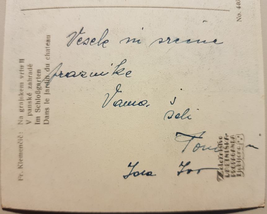 FR.KLEMENČIČ "NA GRAJSKEM VRTU" ČESTITKA LETA 1953, INFO 041 645555