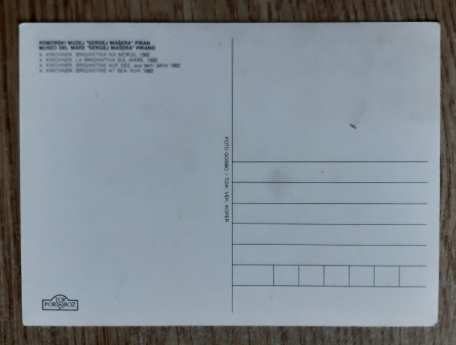 Ladja Brigantina na morju A. Kirchner Pomorski muzej Piran nepotovana