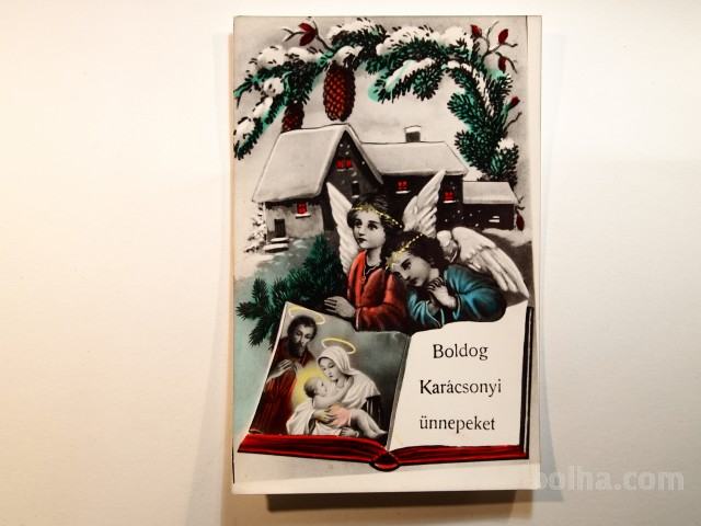 Razglednica BOŽIĆ-NOVO LETO, Madžarska, potovala 1965, znamka odstranjena.