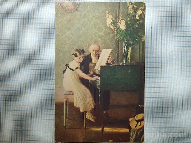 Razglednica SLIKARSTVO - J.A.MUËNIER, Prvo leto klavirja, ni potovala.