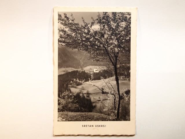Razglednica SRETAN USKRS. Potovala, z znamko, žig-datum slabo viden.