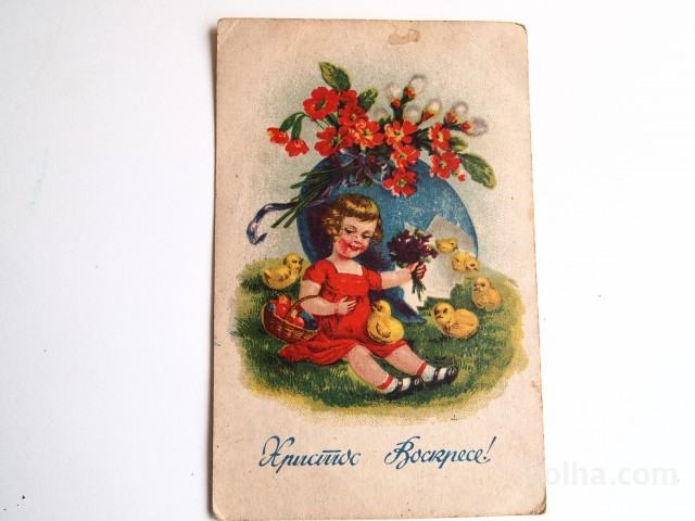 Razglednica VELIKA NOČ, potovala 1947, z znamko.
