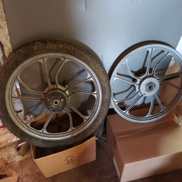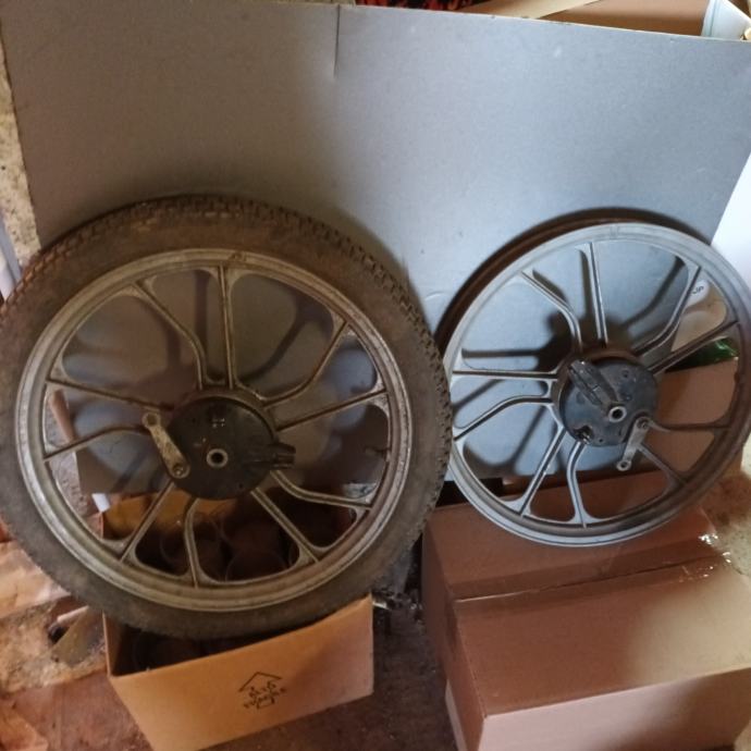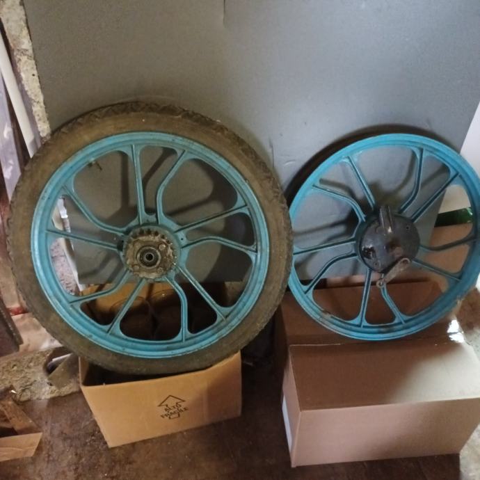 PRODAM LITA PLATIŠČA NOVEJŠA PRAV TAKA KOT NA SLIKI , PRIMERNA ZA TOMOS AVTOMATIK A3 , A35 , FLEKSER , TOMOS STANDART . PLATIŠČA SO POPOLNOMA IZPRAVNA SAMO ZAMENJATE PNEVMATIKE ( GUME ) IN SE ŽE LAHKO VOZITE Z NJIMI NA VOLJO STA DVA KOMPLETA PLATIŠČ : PRVI JE V SIVI BARVI , DRUGI PA V MODRI BARVI CENA ZA EN KOMPLET PRVO IN ZADNJE PLATIŠČE JE 100 EUR .