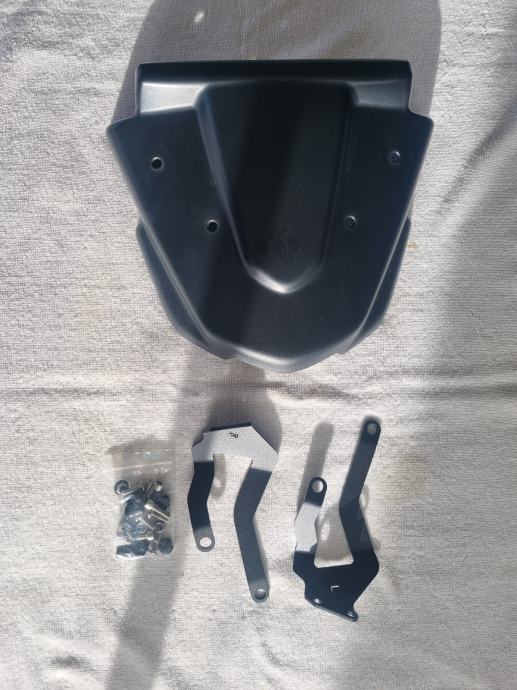 Prodam povsem nov "nos" oz. zgornji sprednji blatnik z vsem pripadajočim montažnim priborom za Yamaha XTZ 1200 Super Tenere, ki dodatno ščiti sprednji del motorja pred kamenjem in umazanijo. Blatnik še ni bil nameščen na motorju.