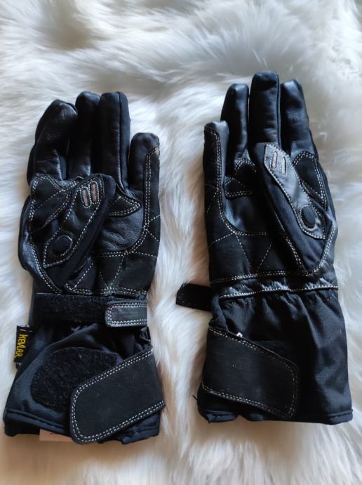 Rokavice praktično nove, usnjene, trda zaščita v predelu prstov in rok, velikost S.