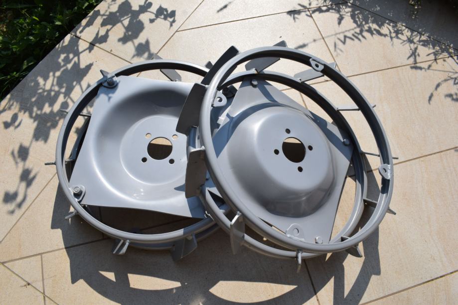Prodam jeklena kolesa za motokulivator fi 46cm, širine 12cm. Luknje so velike 13mm, razdalja med centri lukenj je 66mm. Orignal kupljene za Grillo motokultvator. Cena novih je 247€, prodam za 195€. Kolesa so kot nova. Sem iz okolice Trebnjega. 051823958