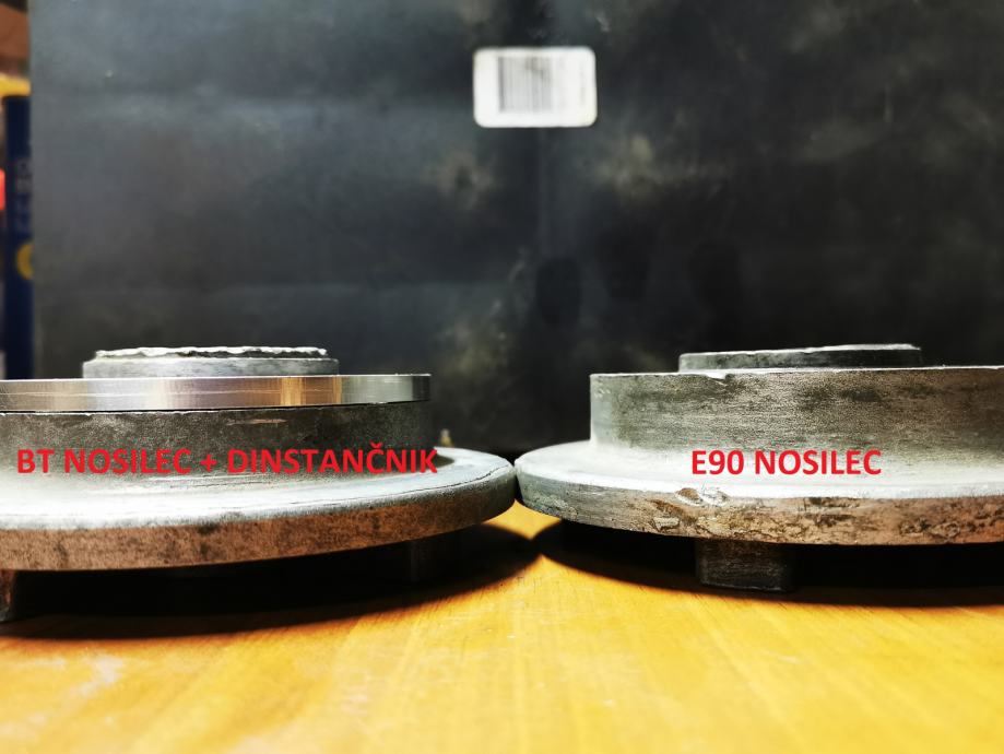 Levi nosilec prikazuje BT nosilec z distančnikom, desni pa original E90.