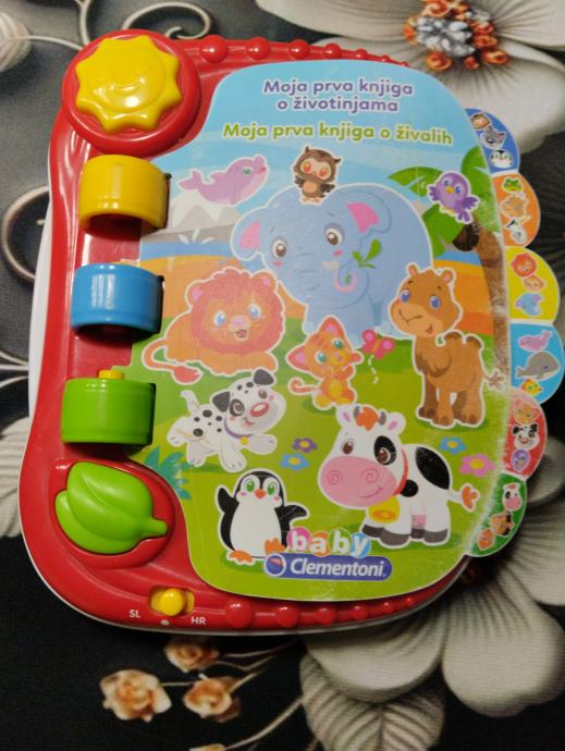 Knjiga s pesmicami v slo in hr jezoiku, vtreca zoga, poje liki se premikajo, se sama kotali, kuzek klavircek -razlucni zvoki, oglasanje zivali, polzek na kolesih- razlicne melodije.