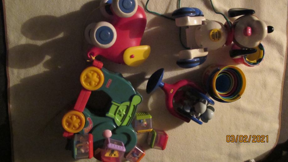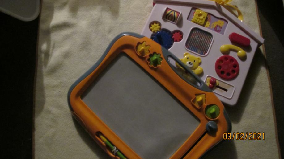 Igrače na baterijo 10 eur/kos. Prav tako pojoča lunica Chicco,ki je nova. Tabla piši/briši Tomy-15 eur