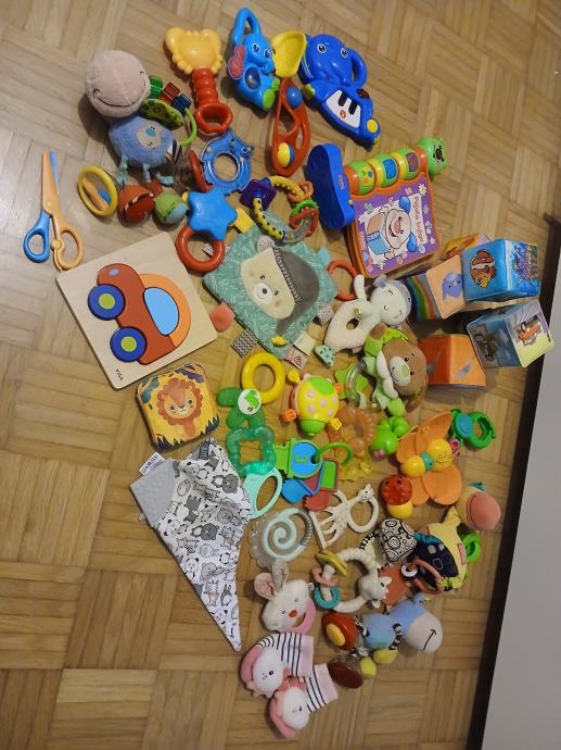 Prodam več kot 35 kosov igračk (grizala, ropotuljice, ninice, glasb. igrače, ). Kar je na sliki.
