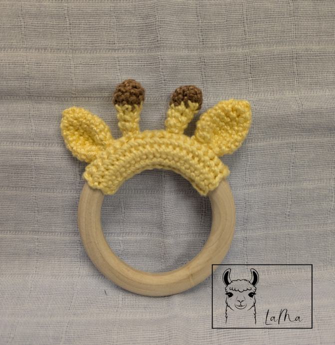 Kvačkana grizalo žirafa je priročen pripomoček za dojenčke, ki so jim začeli rasti zobki. Narejeno je iz 100% bombažne preje. Premer je približno 8cm.