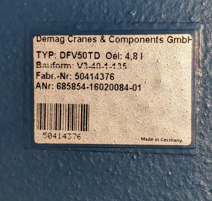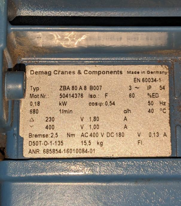 Demag Elektromotor z reduktorjem in zavoro 2,5Nm; 0,18kW; 680 obr/min