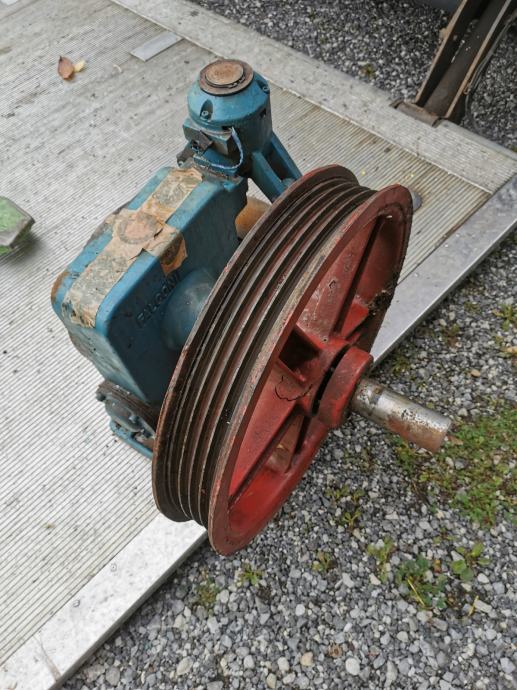 Prodam močnejši reduktor od lifta z zavoro in jermenicami, razmerje obratov 2:90.