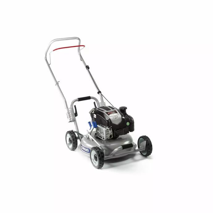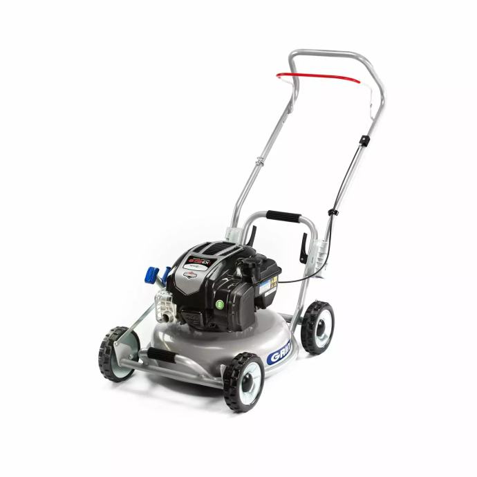 Grin HM46 B&S je eden najbolj priljubljenih strojev v seriji Grin z motorjem z notranjim zgorevanjem. Zgrajen na preizkušeni šasiji Grin, je opremljen z zmogljivim in zanesljivim motorjem Briggs & Stratton serije 675, 163 cc, s funkcijo READY START za enostaven zagon. Najbolj impresivna lastnost te kosilnice je njena okretnost. Zaradi njegove kompaktne šasije, koles z dvojnimi krogličnimi ležaji, majhne teže 27 kg in praktičnega okvirja je idealen stroj za enostavno košnjo med drevesi, gredami in vsemi drugimi ovirami na vrtu. Kljub temu njegova 46 cm kosilna enota omogoča enostavno in hitro vzdrževanje do 800 m2. Podvozje tega stroja je zelo trdno in vzdržljivo. V primeru posebej skalnatega ali neravnega terena je lahko opremljen z opcijskim zaščitnim stožcem motorja.