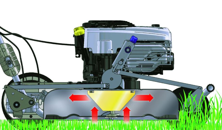 GOLJAT GRIN kosilnice imajo patentiran sistem košnje brez koša in brez odpada.