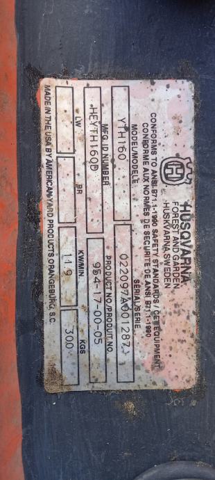Motorno kosilnico, HUSQVARNA, YTH 160, Hydrostatic z desko in vergami. Kosišče kot novo-ležaji menjani, gume dobre, pogon avtomatik-hydrostatic, jermena nova, motor in elektronika delujeta brezhibno, hitrost avtomatska za košnjo in vozna hitrost, naprej nazaj, vklop isklop kosilnice-košnje elektronsko, maska spredaj ojačana in pripravljeno vse za luči. Takojšnji izklop sistema pri izstopu iz stroja ali v slučaju nezgode(izklop motorja, premika in delovanja kosilnice). Zamenjano, olje, oljni filter in svečka. Prodajam zato ker imam premalo površino za košnjo. Sem tretji lastnik. Oglasite se samo resni kupci.