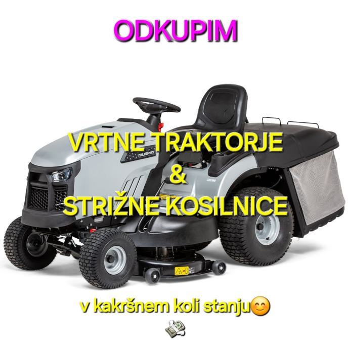Imate vrtni traktor ali strižno kosilnico, ki vam je v napoto, in se jo želite znebiti pred zimo? Odkupim v kakršnem koli stanju, po celotni Sloveniji z takojšnjim izplačilom gotovine. Pošljite mi slike na sms 069-806-111