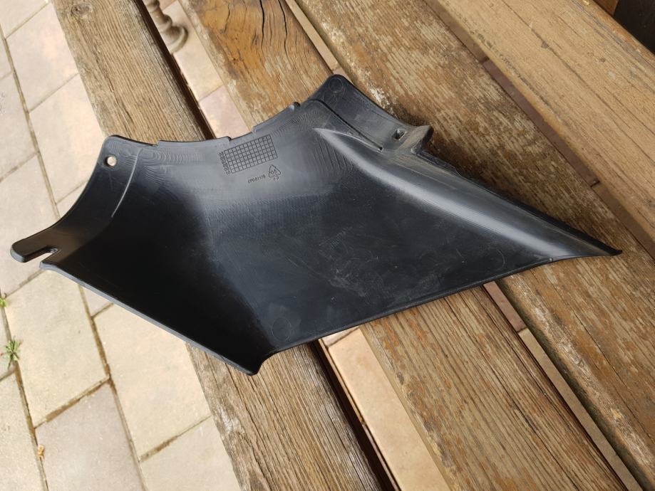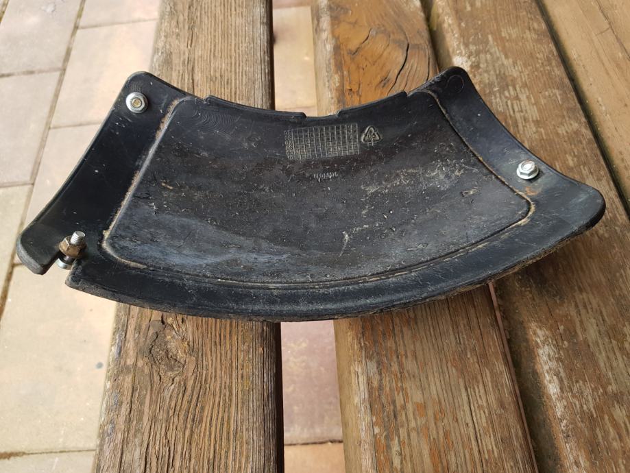 Oba stranska pokrova - deflektor usmernik za izmet vrtne kosilnice. Okroglo kovinsko ohišje, pritrditev s tremi vijaki. Cena 6 eur za oba.