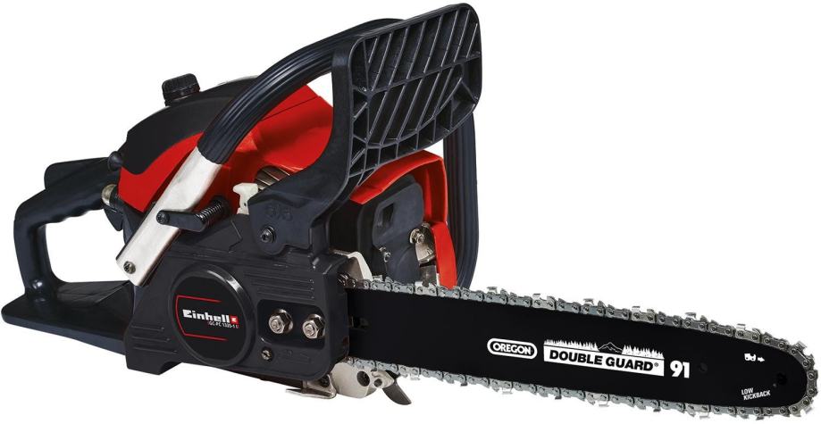 Zmogljiva bencinska motorna žaga Einhell GC-PC 1335/1 I z verižnim mečem in verigo kakovosti Oregon je namenjena žaganju drv, redčenju, sekanju in obrezovanju dreves. Motorna žaga z zmogljivim 1.300 W, 2-taktnim motorjem se poganja z mešanico bencina in olja. Tako lahko delate z neomejenim dosegom brez električnih kablov na velikih posestvih.Verižni meč in žagina veriga kakovosti Oregon za optimalno zmogljivost rezanjaBencinska motorna žaga z verižnim mečem in verigo kakovosti Oregon zagotavlja optimalne rezultate rezanja. Deluje s hitrostjo verige do 22 m/s in dolžino reza 34,5 cm. S pomočjo praktičnega mehanizma za napenjanje verige lahko optimalno prilagodite napetost žagine verige kadar koli. Zahvaljujoč samodejnemu mazanju verige je vedno zagotovljena prava količina olja - za dolgo življenjsko dobo verige in meča.Bencinska motorna žaga s hitrim zagonom in antivibracijskim sistemomPomoč pri hladnem zagonu Primer in Auto-Choke vam omogočata enostaven in hiter zagon motorne žage. Digitalni vžig zagotavlja stabilno delovanje motorja. Zračno hlajen motor z dvostransko uležajeno ročično gredjo nudi močan pogon. Antivibracijski sistem blaži udarce, tako da lahko lesna dela opravljate brez utrujenosti.Visoka varnost pri deluZaščita pred povratnim udarcem v kombinaciji s takojšnjo zavoro verige in zatičem za lovljenje verige vas ščitijo pred poškodbami. Ti se aktivirajo takoj, ko se žaga dvigne, tako da se veriga nemudoma ustavi. Če veriga izjemoma skoči z meča, jo zanesljivo ujame lovilec verige. Velik in robusten kovinski krempljasti prislon zagotavlja varno in udobno vodenje pri vseh delih. Meč in veriga sta med shranjevanjem čisto in varno shranjena z zaščito za meč.Zaščita za meč in steklenička za mešanico bencina/olja sta vključeni v dobavo.