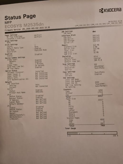 Rabljen tiskalnik Kyocera ECOSYS M2535dn, zelo dobro ohranjen.