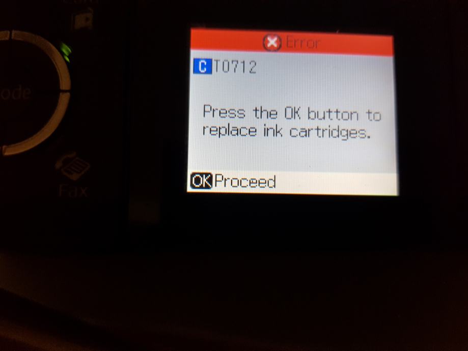 Modre kartuše ja zmanjkalo. Zraven pride dodatna nerabljena rumena kartuša.