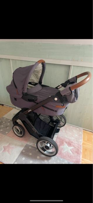 Prodam lepo ohranjen otroški voziček Mutsy Evo Urban Nomad 2 v 1. Ogrodje je črne barve z rjavim usnjenim ročajem, tkanina pa je barve dark grey. Ima košaro za novorojenčke in sedežni del. Zraven sta še rolka in adapterji.