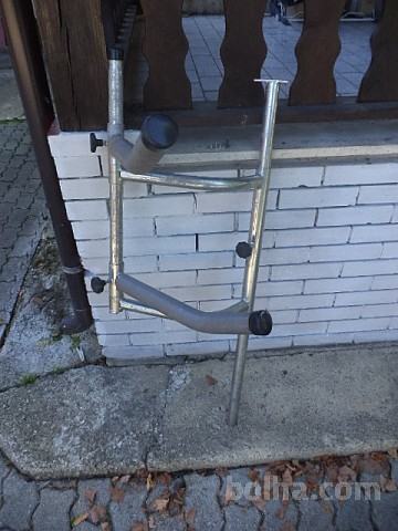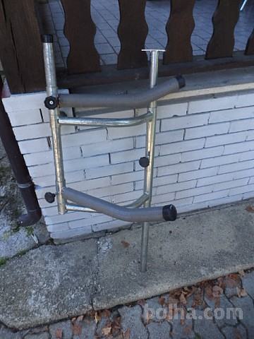 Stojalo za dva sedla v sedlarnici konjske prikolice, je nastavljivo po višini glede na velikost sedla z možnostjo pregibanja v desno ali levo, pocinkano, brezhibno za vgradnjo v sedlarnico konjske prikolice, za dva sedla in opremo, montaža enostavna z vijaki