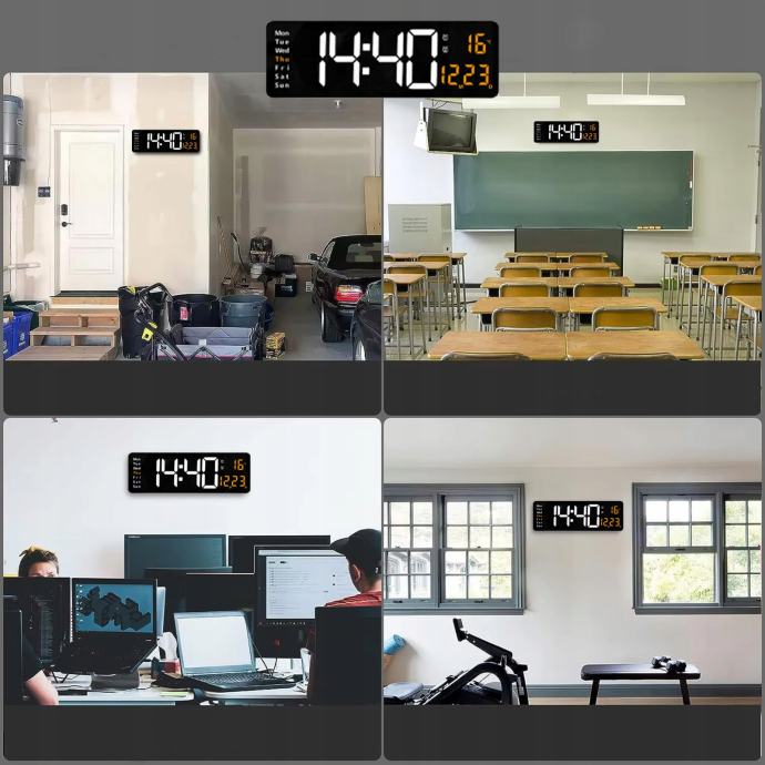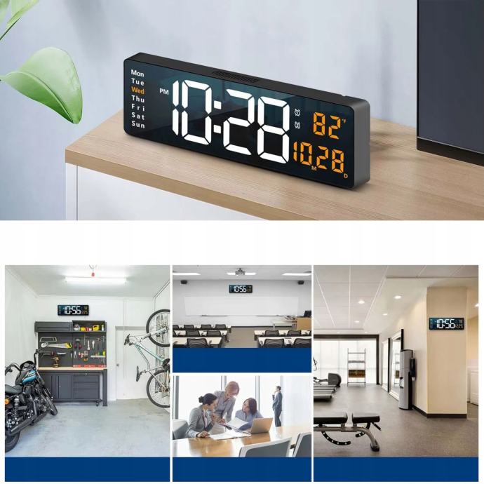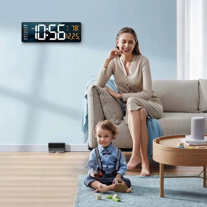 Iščete uro, ki jo boste videli iz vsakega kota sobe? Predstavljamo vam XXL digitalno LED uro dolžine 39 cm, ki združuje futurističen dizajn in vrhunsko funkcionalnost. Ta impresivna ura ni le merilec časa, temveč osrednji dekorativni element vaše dnevne sobe, pisarne, telovadnice ali sejne sobe.