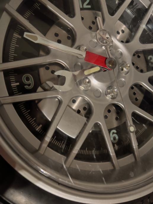 Stenska ura v obliki avtomobilske gume