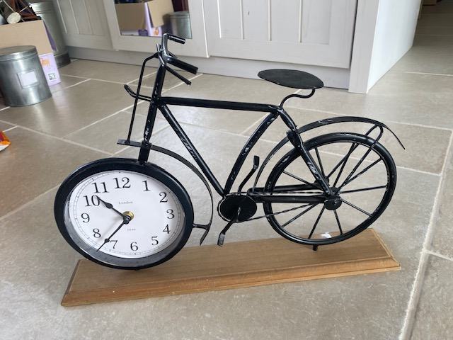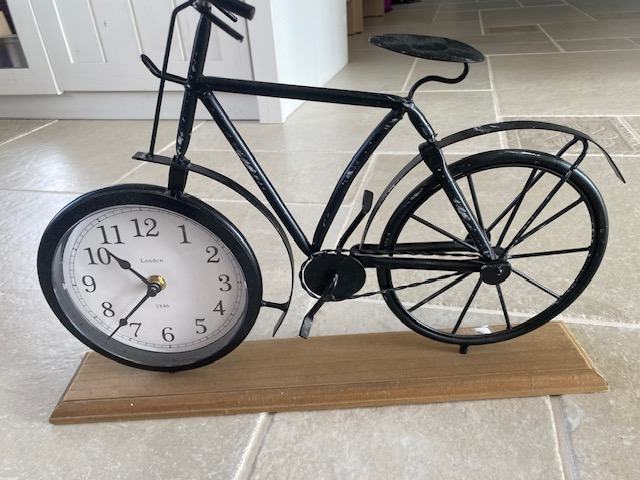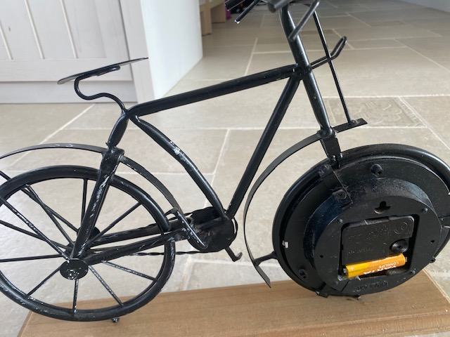 Prodam uro v obliki kolesa na lesenem stojalu. Kolo je iz pločevine. Deluje brezhibno.