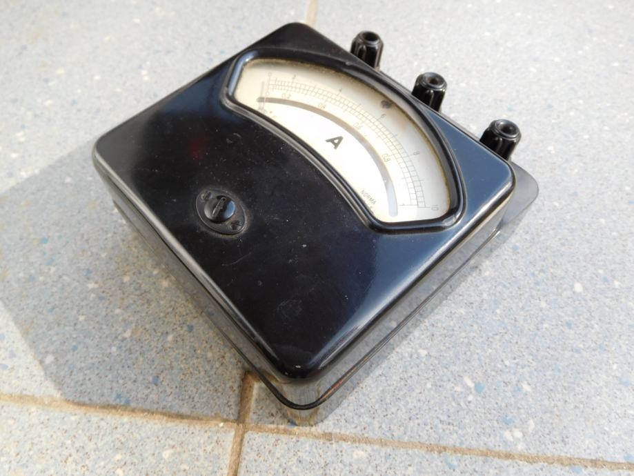 Prodam lepo ohranjen in brezhiben star bakelitni izmenični ampermeter Norma z dvema področjema 10 A in 1 A.