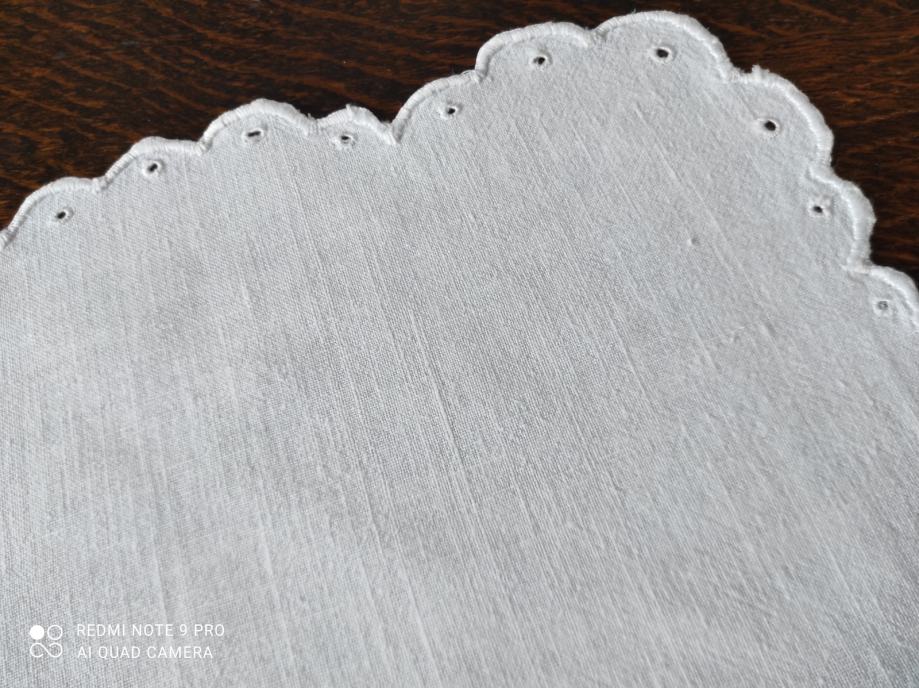 - Bel prtiček z vezenino, vel. 24x24 cm, brezhiben