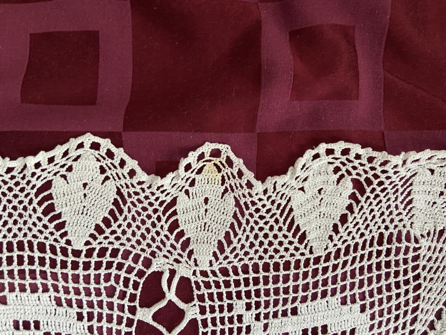 04 - kvačkan prt 68x117 cm rože v kvadratu (bel,1 kos) -> zaradi madeža cena -10eur