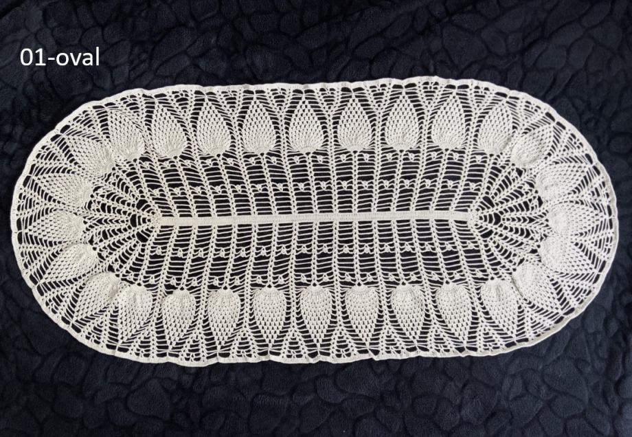 01 - kvačkan prt 45x90 cm oval (bel bombaž, 1 kom)