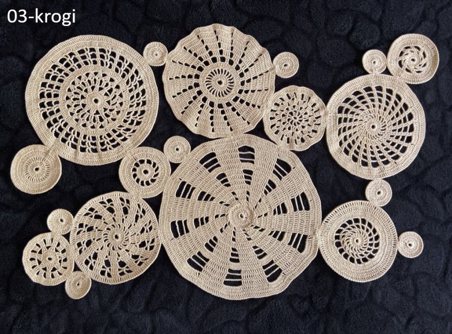 03 - kvačkan prt 30x48 cm krogi (umazana bela/ bež bombaž, 1 kom)