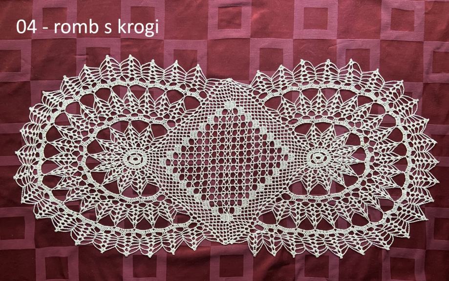 04 - kvačkan prt 46x95 cm romb s krogi (bel bombaž, 1 kom)