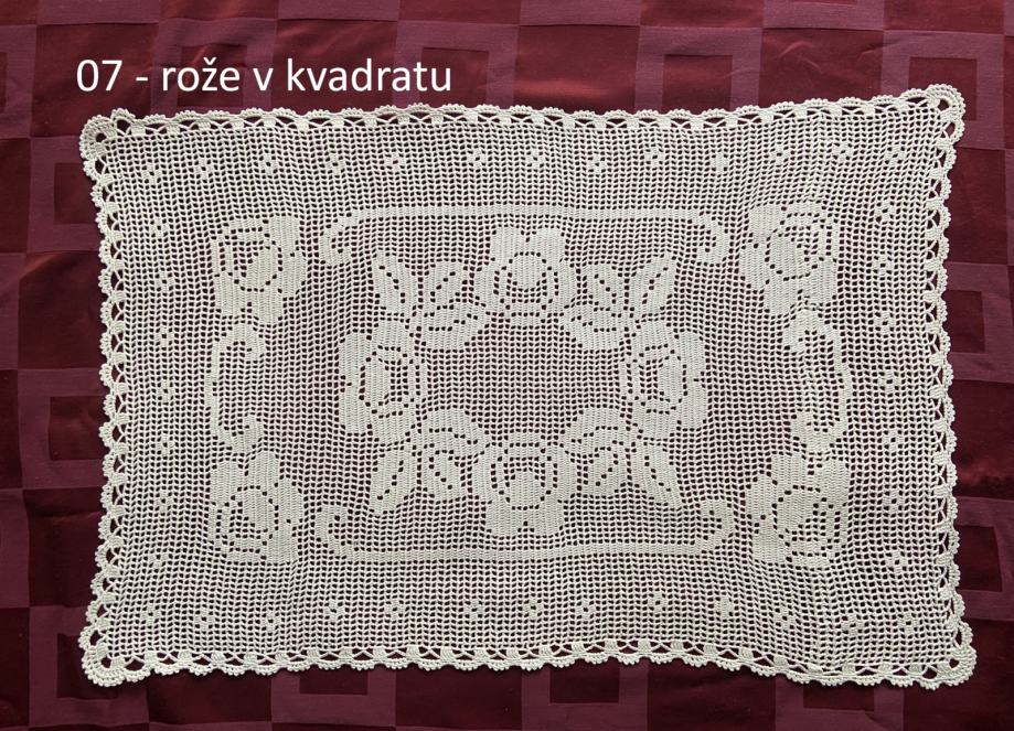 07 - kvačkan prt 45x68 cm rože v kvadratu (bel bombaž, 1 kom)