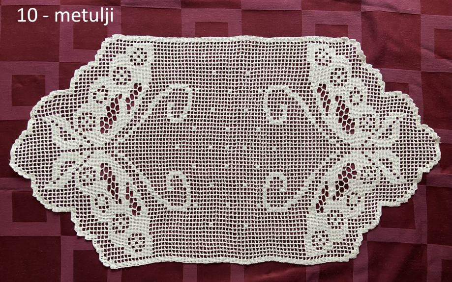 10 - kvačkan prt 39x70 cm metulji (bel bombaž, 1 kom)