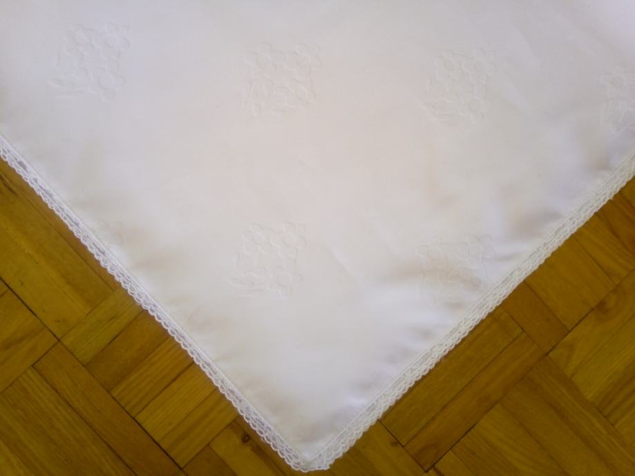 Svečan beli z vtkanimi rožami, iz poliestra, s čipko - 90 x 90 cm,
