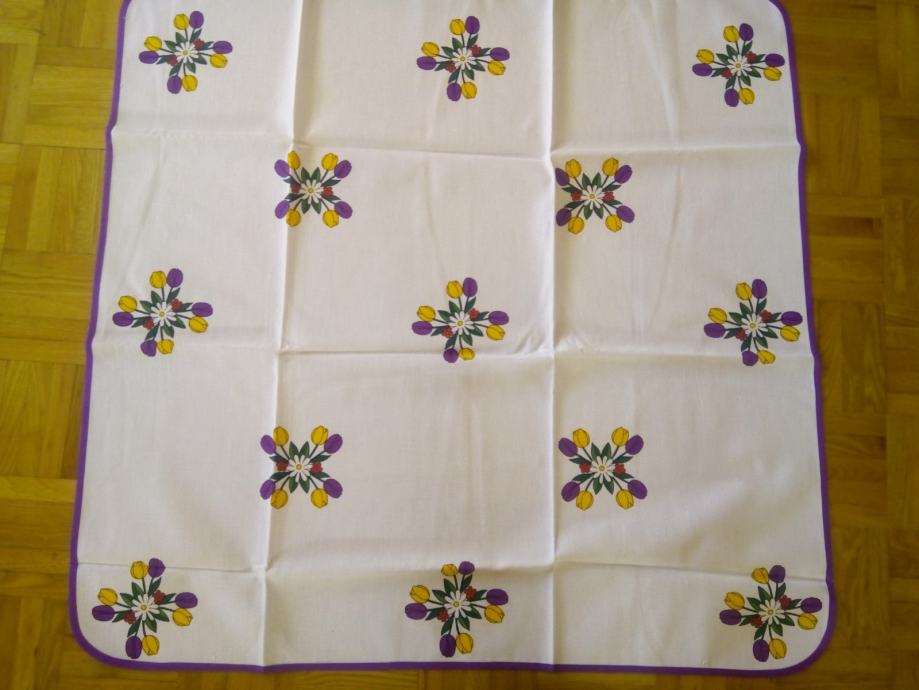 bombažni s tulipani z vijola obrobo - 80 x 80 cm.