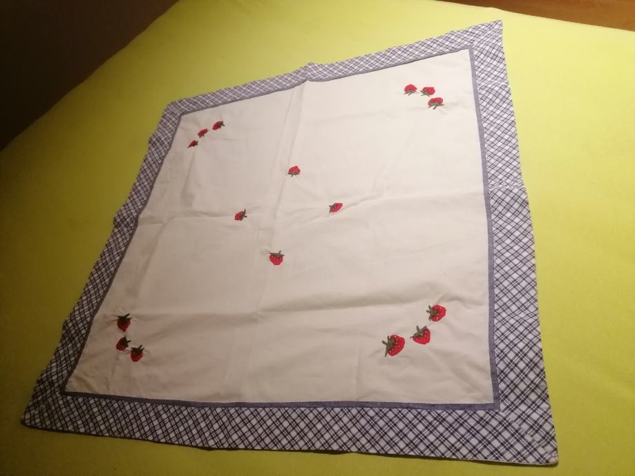 Namizni prt dimenzije 78x79cm, z motivom jagod.