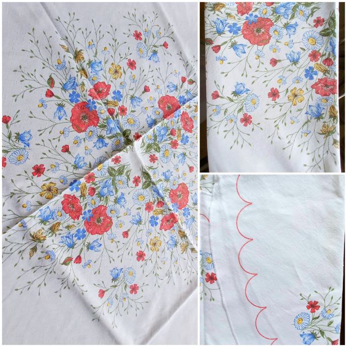 Okrogel prt z vezenim cvetličnim motivom, premer 140 cm, cena 10 EUR