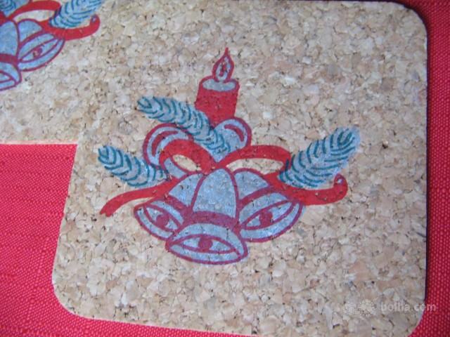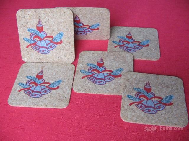 6 podstavkov iz plute ima novoletni dekor natisnjen na eni strani. So nerabljeni, v original embalaži.