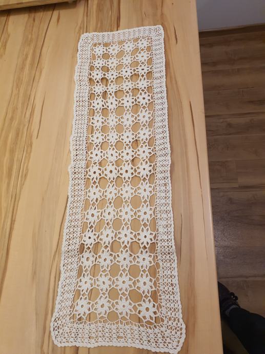 Prt kvačkan bel, 3 kos. Dimenzij 70 x 22cm, in 2 kos po 22 x 22 cm. NOVO, kOMPLET ZA 25 EUR.