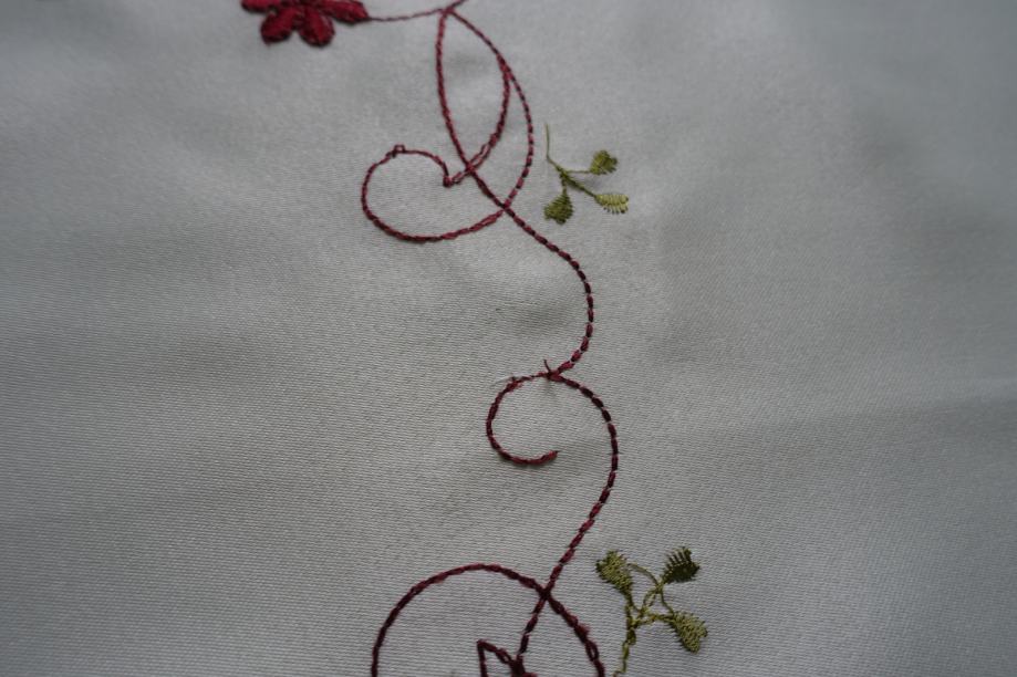Prt je svetla vanilija barva, material poliester, strojno vezen vzorček.