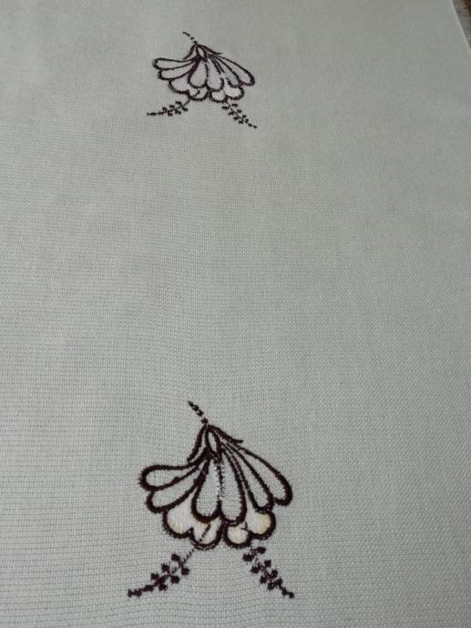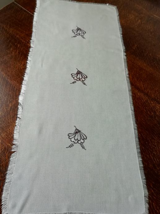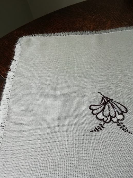 Prt za klubsko mizo z resicami šir. 1 cm, strojno vezenino, nepoškodovan, lepo ohranjen.