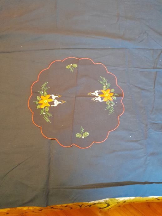 Moder prticek strojno vezen premer 34cm vezenje v rdeči barvi