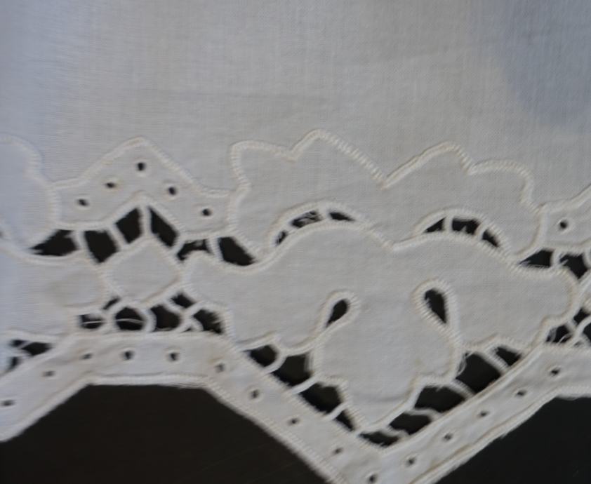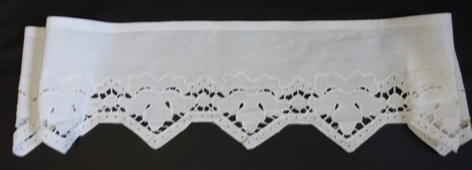 Višina 16 cm, material bombaž, bela barva, lepo izdelani. Zgornji del je strojno zarobljen. Višina 16 cm