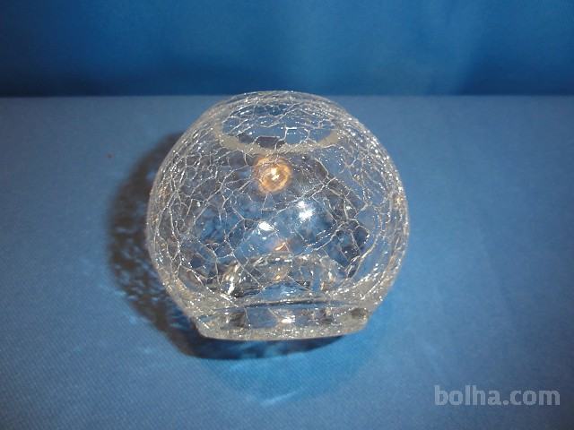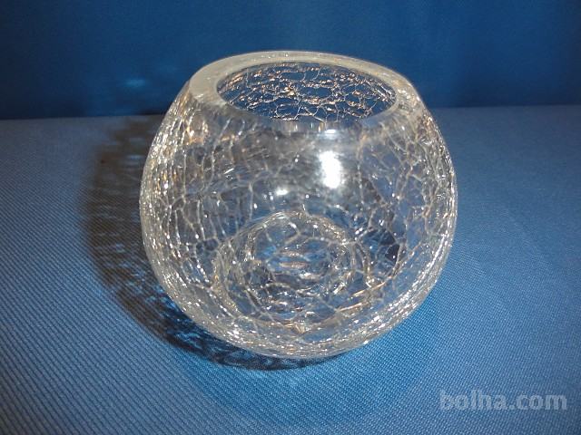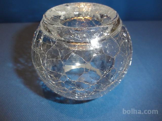 NA ENI STRANI JE LAHKO VAZA, NA DRUGI (OBRNJENA), SVEČNIK Z IZGLEDOM RAZBITEGA STEKLA. Višina 7 cm, premer 7 cm.
