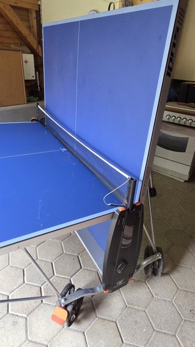 Odlično ohranjena zkožljiva miza za namizni tenis na kolesih. S pokrovalom